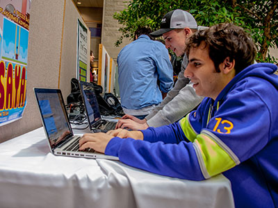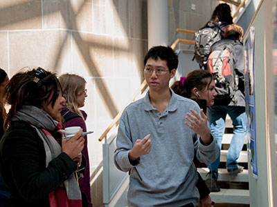 The School of Computing’s Creative Computing event was held Thursday, April 4 in the BioSciences Atrium. It was a day that highlighted the work of the School’s undergraduate and graduate students with hands-on demos, presentations and posters from a selection of our courses. The event featured the 5th Annual Computer Art Exhibit from this year’s students of COCA 201, projects in Game Design and Game Technology from students in CISC 226 and CISC 877, Human Computer Interaction projects from CISC 325, and poster presentations from our fourth year students based on their major undergraduate research projects.
